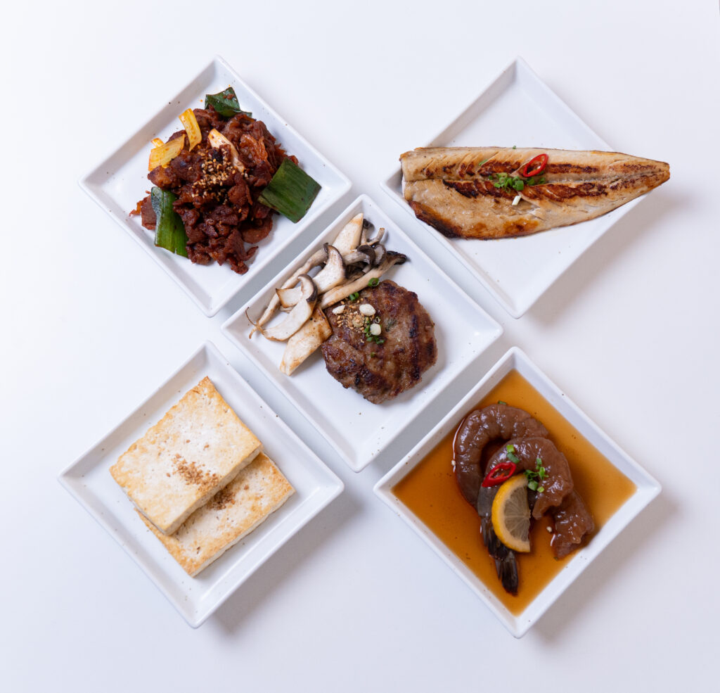 반찬, 음료, 토핑, 사이드의 조합은