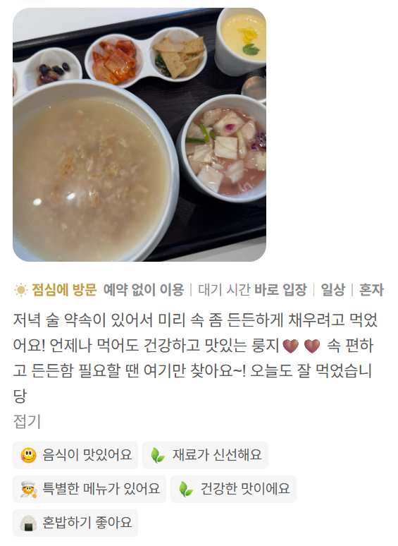 속이 편안하고 부담없는 한끼를 제공하고 싶었습니다.