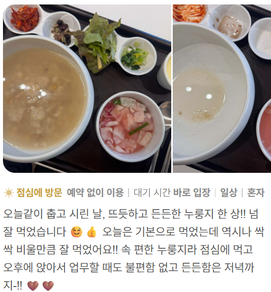 누룽지를 매일 먹을 수 있는 식사로 다시 만들었습니다.