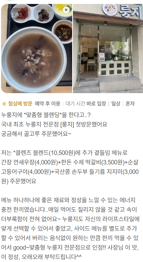 룽지는 국내 최초 누룽지 외식 전문 브랜드로,